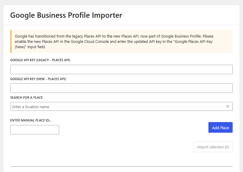 To import Google reviews, you first need a Google Places API Key (learn how to get one here).